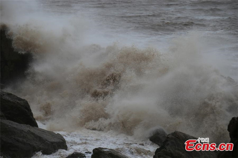 El tifón Lekima genera enormes olas en Taizhou (2)