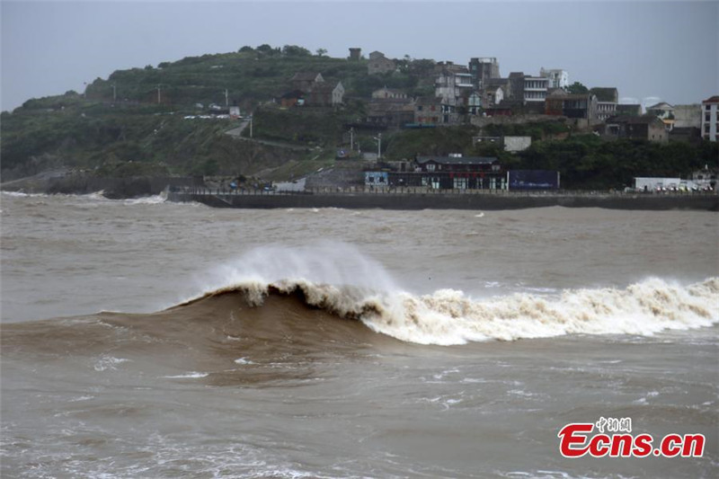 Enormes olas causadas por el tifón Lekima arrecian en la playa de Taizhou, provincia de Zhejiang, 9 de agosto del 2019 [Foto: Servicio de Noticias de China / Jin Yunguo]