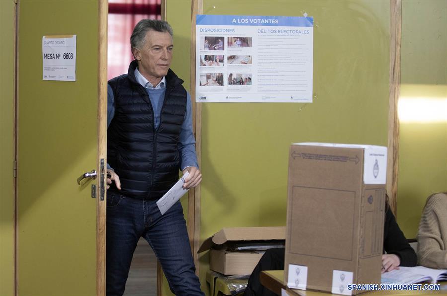 El presidente argentino, Mauricio Macri, sale de un cuarto luego de emitir su voto durante las elecciones primarias, en la ciudad de Buenos Aires, capital de Argentina, el 11 de agosto de 2019. Los centros de votación para las elecciones primarias de Argentina se abrieron el domingo a las 08:00 hora local (11:00 GMT). Están habilitados para sufragar un total de 33.841.837 de ciudadanos, que votarán para definir a los candidatos que buscarán la Presidencia en los comicios del 27 de octubre, en los que el oficialista "Juntos por el Cambio" aspira a su segundo mandato consecutivo. (Xinhua/Martín Zabala)