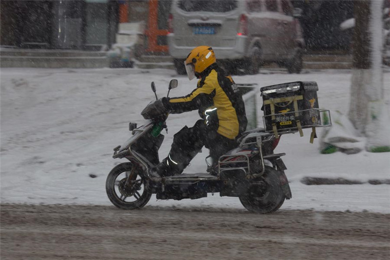 Un Repartidor en la Nieve captura a un hombre que viaja a entregar comida para llevar en la ciudad de Jilin, provincia de Jilin, noreste de China, en enero de 2018. (Foto: cpanet.org.cn/ Wang Hanyi)