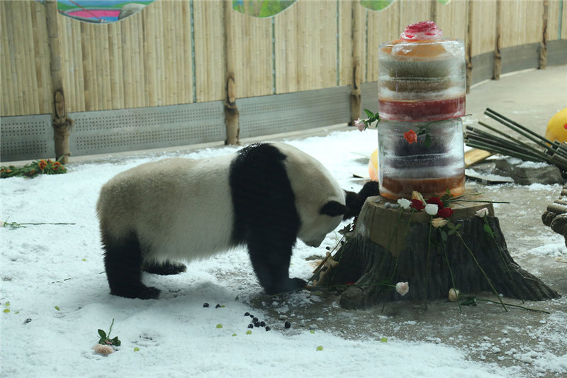 La panda gigante Sijia celebró este lunes su décimotercer cumplea?os junto a cerca de 1,000 seguidores en la estación de esquí Yabuli, en la provincia de Heilongjiang. [Foto: proporcionada]