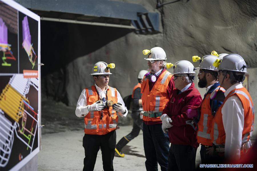 ANTOFAGASTA, 14 agosto, 2019 (Xinhua) -- Imagen cedida por la Presidencia de Chile, del presidente chileno, Sebastián Pi?era (3-d), participando durante la inauguración de las operaciones subterráneas de la mina Chuquicamata, en Antofagasta, Chile, el 14 de agosto de 2019. Pi?era inauguró el miércoles las operaciones subterráneas de la mina Chuquicamata, de la Corporación Nacional del Cobre (Codelco), después de 104 a?os de labores continuas a cielo abierto. (Xinhua/Marcelo Segura/Presidencia de Chile)