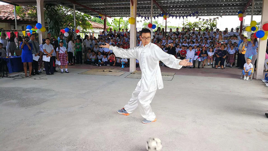 En Panamá, los estudiantes a menudo me llamaban "instructor Kungfu". Entre los diferentes grupos etarios de estudiantes (entre 4 y 70 a?os), ense?aba diferentes habilidades de la cultura tradicional china: Taiji, Shaolin Changquan, Ba Duan Jin, Wu Qin Xi, Diábolo, saltar con sogas, bolitas blandas de Tai Chi, juego de la soga, danza del dragón y la danza del león, entre otros. "Tai Chi es lograr tener una mente calmada y un cuerpo relajado". " Relajado" no significa estar flojo ni soso, sino mantener la armonía para dirigir la mente hacia un estado de equilibrio permanente. A menudo expresaba estos conceptos en las clases de Tai Chi. Creo que el encanto de los deportes tradicionales chinos no se limita a los movimientos, sino que se destacan por el sentido que portan.