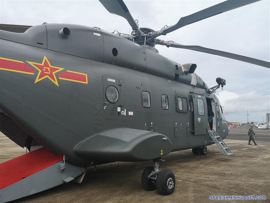 Imagen del 22 de agosto de 2019 de un helicóptero de rescate del equipo médico "Tren de la Paz" del Ejército Popular de Liberación de China (EPL), permaneciendo en un helicóptero de rescate Z-8G en el norte de Laos. El equipo médico "Tren de la Paz" del Ejército Popular de China (EPL) acompa?ó a cuatro turistas chinos que resultaron heridos de gravedad en el choque de un autobús en el norte de Laos para que hicieran un vuelo de vuelta a China el jueves por la tarde. El equipo chino asiste al ejercicio conjunto de rescate humanitario y médico realizado por China y Laos llamado "Tren de la paz-2019". (Xinhua/Equipo Médico Tren de la Paz)