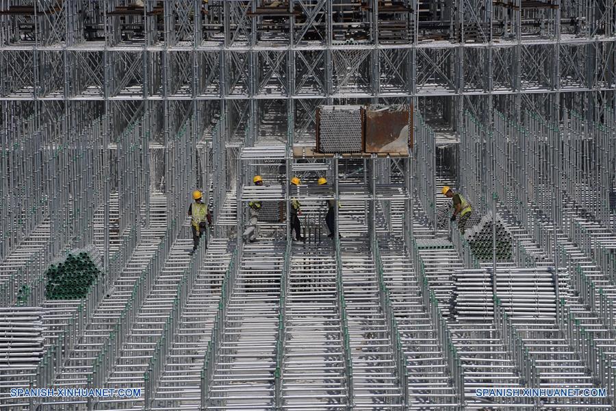 EI, 27 agosto, 2019 (Xinhua) -- Empleados trabajan en el sitio de construcción de la Estacion de Xiongan, del tren de alta velocidad interurbano Beijing-Xiongan, en la Nueva Area de Xiongan, en la provincia de Hebei, en el norte de China, el 27 de agosto de 2019. Cubriendo un área de 470.000 metros cuadrados, la Estación de Xiongan consiste en tres pisos sobre el suelo y dos pisos debajo del suelo. La principal estructura subterránea será completada en un futuro cercado y los trabajadores se moverán a la construcción sobre el suelo. (Xinhua/Xing Guangli)