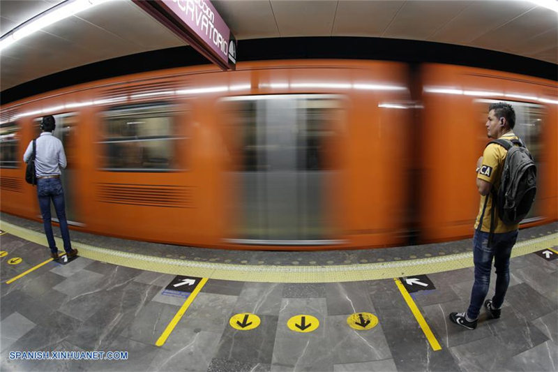 Imagen del 30 de agosto de 2019 de usuarios esperando un vagón del Metro de la Ciudad de México, en la Ciudad de México, capital de México. El Metro conmemorará el miércoles 4 de septiembre el 50 aniversario de su inauguración oficial, realizada un día antes de abrir al público, convertido en la columna vertebral de la movilidad de la capital mexicana y en un ícono de su vida, según sus autoridades. (Xinhua/Francisco Ca?edo)