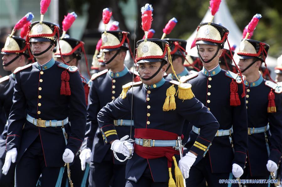 Cadetes de la Academia marchan durante el desfile militar del Día de la Independencia de Brasil en la Explanada de los Ministerios, en Brasilia, Brasil, el 7 de septiembre de 2019. El presidente de Brasil, Jair Bolsonaro, encabezó el sábado el tradicional desfile militar por el Día de la Independencia de Brasil en el marco de la celebración del 197 aniversario de la proclamación de la Independencia de Brasil presentada por el Imperio de Brasil el 7 de septiembre de 1822. (Xinhua/Lucio Tavora)