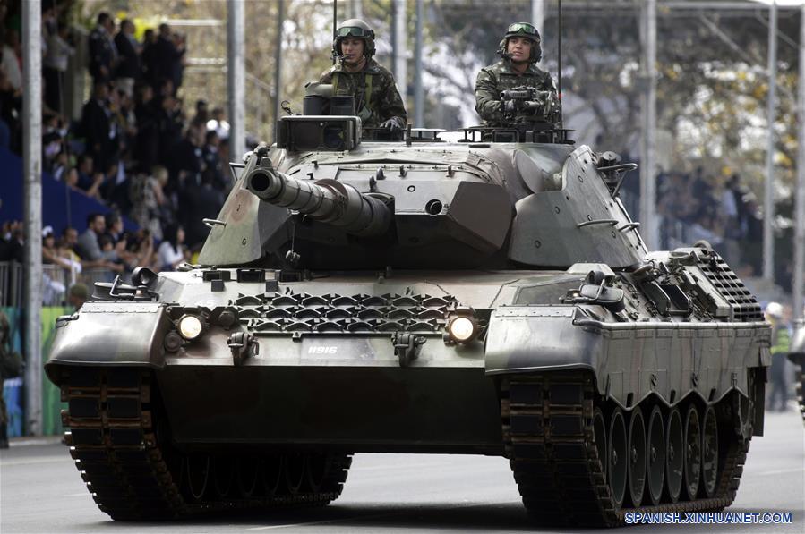 Soldados del Ejército brasile?o a bordo de un tanque participan durante el desfile militar del Día de la Independencia de Brasil en la Explanada de los Ministerios, en Brasilia, Brasil, el 7 de septiembre de 2019. El presidente de Brasil, Jair Bolsonaro, encabezó el sábado el tradicional desfile militar por el Día de la Independencia de Brasil en el marco de la celebración del 197 aniversario de la proclamación de la Independencia de Brasil presentada por el Imperio de Brasil el 7 de septiembre de 1822. (Xinhua/Lucio Tavora)