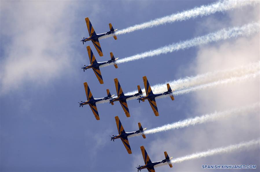 Aviones del Escuadrón de Humo de la Fuerza Aérea Brasile?a vuelan durante el desfile militar del Día de la Independencia de Brasil en la Explanada de los Ministerios, en Brasilia, Brasil, el 7 de septiembre de 2019. El presidente de Brasil, Jair Bolsonaro, encabezó el sábado el tradicional desfile militar por el Día de la Independencia de Brasil en el marco de la celebración del 197 aniversario de la proclamación de la Independencia de Brasil presentada por el Imperio de Brasil el 7 de septiembre de 1822. (Xinhua/Lucio Tavora)