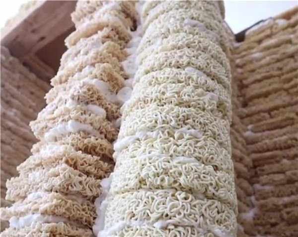 El residente local de apellido Zhang ha construido una casa de cuatro metros cuadrados con cerca de 2.000 bolsas de fideos instantáneos caducados en el distrito de Huadian, provincia de Jilin, noreste de China. [Foto de chinadaily.com.cn]