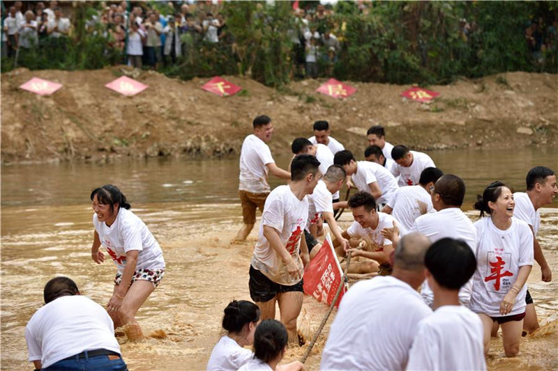 Los visitantes se divierten en el juego de tira y afloja durante “Shaiqiu” que se celebra en Fuling, Chongqing, el 7 de septiembre del 2019. (Foto: chinadaily.com.cn)