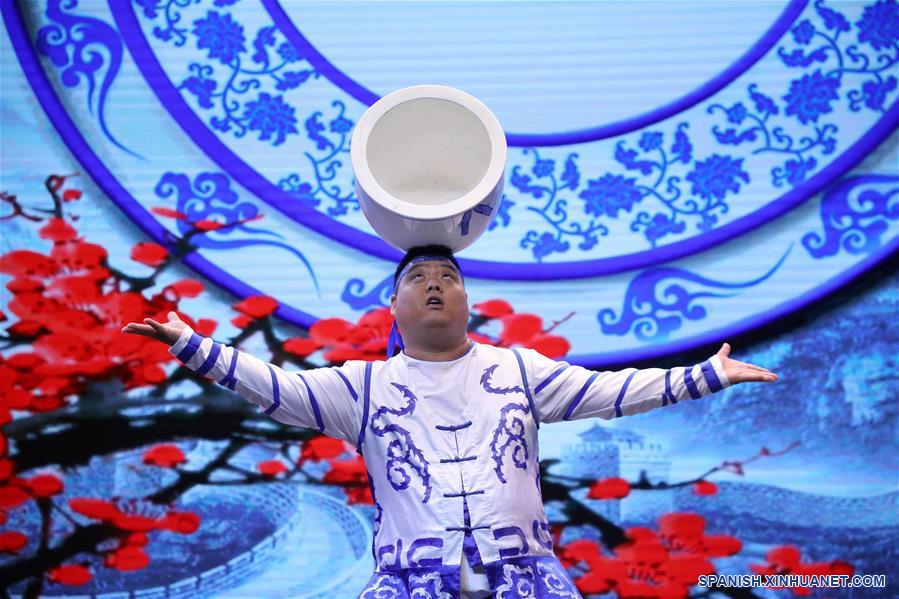 BUENOS AIRES, 17 septiembre, 2019 (Xinhua) -- Imagen del 16 de septiembre de 2019 de un integrante de la Compa?ía de Teatro de Danza y ópera de Hangzhou realizando una presentación en la recepción por el 70 aniversario de la fundación de la República Popular China, en el Centro Cultural Kirchner, en Buenos Aires, Argentina. La actividad organizada por la Embajada de China en Argentina ofreció un recorrido por las distintas etapas de la historia china tras su fundación en 1949, resaltando el proceso de Reforma y Apertura y la actual Iniciativa de la Franja y la Ruta, además de expresiones del arte convencional mezclado con elementos de la cultura popular argentina. (Xinhua/Martín Zabala)