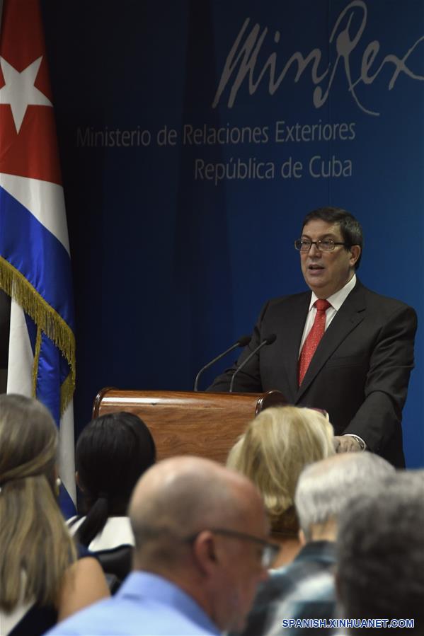 LA HABANA, 20 septiembre, 2019 (Xinhua) -- El ministro de Relaciones Exteriores de Cuba, Bruno Rodríguez Parrilla, habla durante una conferencia de prensa en la sede de la cancillería, en La Habana, capital de Cuba, el 20 de septiembre de 2019. El gobierno cubano hizo público el viernes un informe en el que cuantificó millonarias pérdidas provocadas por el bloqueo que desde hace más de medio siglo mantiene Estados Unidos contra Cuba. (Xinhua/Joaquín Hernández)