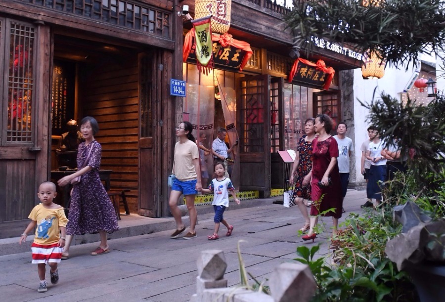 Turistas desayunan en la aldea Mulihong, condado Xiuning, ciudad de Huangshan, Anhui. 18 de septiembre del 2019. (Foto: Xinhua/ Zhang Duan)