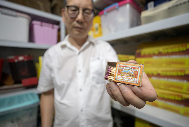 Hu Wuyin, director de Hangzhou Match Factory, con su colección de cajas de cerillas de varios países en su fábrica en Hangzhou, provincia de Zhejiang. [Foto por Lyu Zhiyao / Para China Daily]