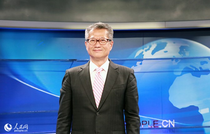 El secretario de Finanzas de Hong Kong, Paul Chan Mo-po, durante una entrevista en Pueblo en Línea. (Liu Jieyan / Pueblo en Línea)