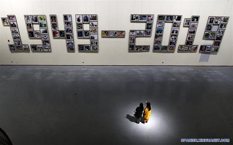 ZUNYI, 13 octubre, 2019 (Xinhua) -- Imagen del 12 de octubre de 2019 de una persona visitando una exposición fotográfica del tema de caras sonrientes, en Zunyi, provincia de Guizhou, en el suroeste de China. (Xinhua/Yang Wenbin)