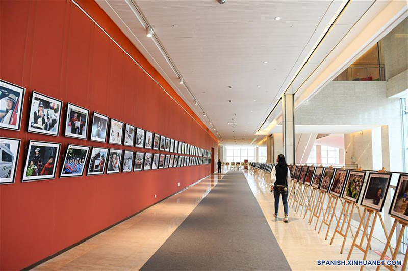 ZUNYI, 13 octubre, 2019 (Xinhua) -- Imagen del 12 de octubre de 2019 de una persona visitando una exposición fotográfica del tema de caras sonrientes, en Zunyi, provincia de Guizhou, en el suroeste de China. (Xinhua/Yang Wenbin)