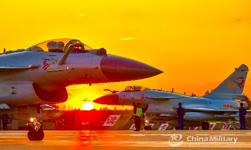 Beijing, 14/10/2019 (El Pueblo en Línea) - Una brigada de aviación de la fuerza aérea del Comando del Teatro de Operaciones del Sur, del Ejército Popular de Liberación (PLA, por sus siglas en inglés) ordena desplazar por la pista a los aviones de combate J-10 durante un nocturno e improvisado ejercicio de combate. 10 de octubre del 2019. (Foto: eng.chinamil.com.cn)
