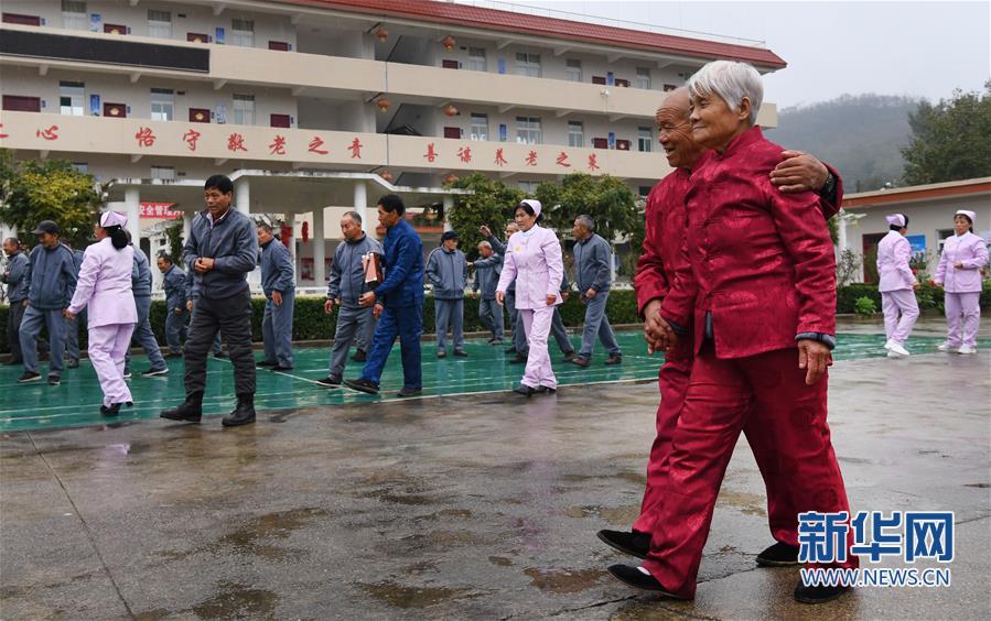 Una pareja de ancianos pasea por un centro de atención para ancianos en Luonan. [Foto / Xinhua]