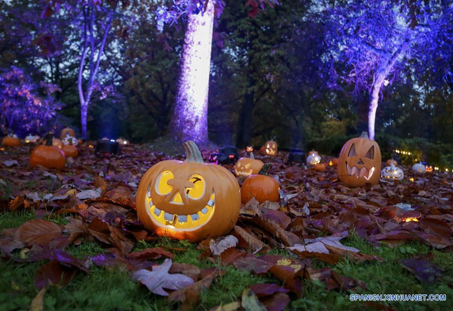 VANCOUVER, 17 octubre, 2019 (Xinhua) -- Imagen del 16 de octubre de 2019 de calabazas talladas en el evento temático de Halloween "Resplandor en el Jardín" en el Jardín VanDusen, en Vancouver, Canadá. (Xinhua/Liang Sen)
