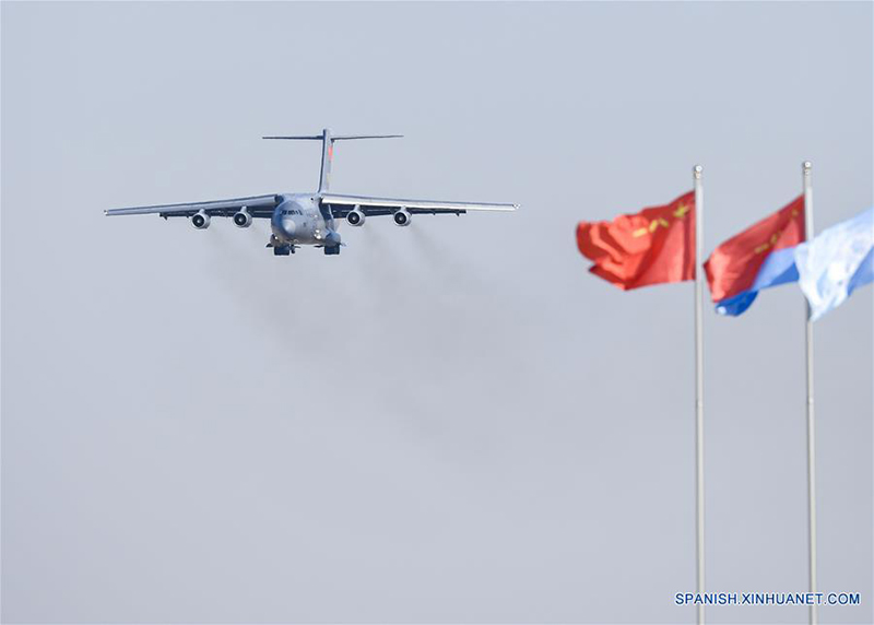 CHANGCHUN, 17 octubre, 2019 (Xinhua) -- Un avión de transporte Y-20 realiza una demostración de vuelo en celebración del 70° aniversario de la fundación de la fuerza aérea del Ejército Popular de Liberación de China, en Changchun, capital de la provincia de Jilin, en el noreste de China, el 17 de octubre de 2019. Es la primera vez que las aeronaves caza furtivo J-20 y aviones de transporte Y-20 realizan una demostración de vuelo en el noreste de China durante la actividad. (Xinhua/Zhang Nan)
