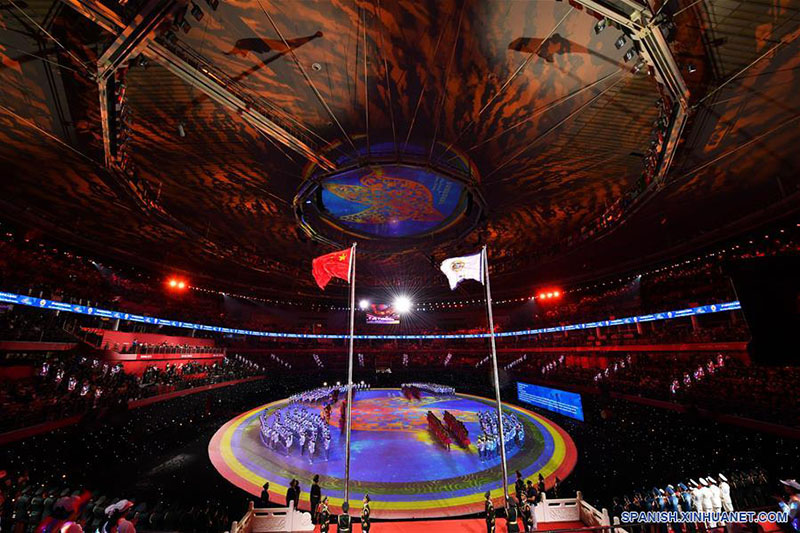 WUHAN, 27 octubre, 2019 (Xinhua) -- Artistas participan en la ceremonia de clausura de los 7 Juegos Mundiales Militares del Consejo Internacional del Deporte Militar, en Wuhan, capital de la provincia de Hubei, en el centro de China, el 27 de octubre de 2019. (Xinhua/Hu Huhu)