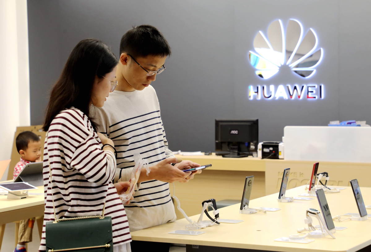 Los consumidores prueban el teléfono inteligente Mate30 de Huawei en una tienda en Hangzhou, capital de la provincia de Zhejiang. [Foto proporcionada a China Daily]