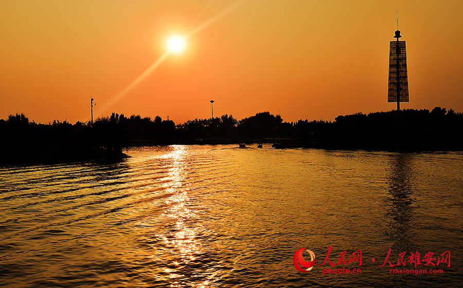 El lago Baiyangdian en la Nueva área de Xiongan se ve hermoso al atardecer. (Foto / Liu Xiangyang)