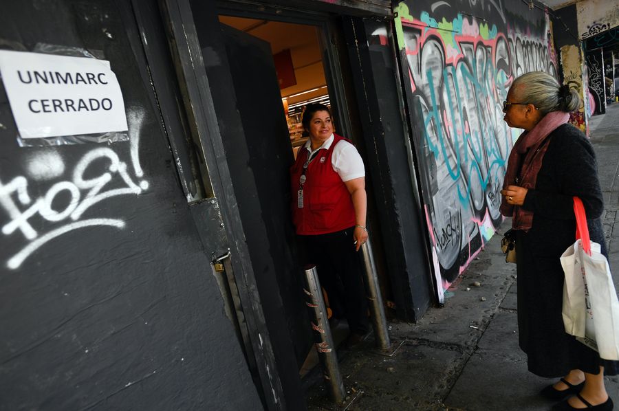 Una empleada de un supermercado da información a una persona, después de un toque de queda, en Santiago, Chile, el 21 de octubre de 2019. (Xinhua/Jorge Villegas)