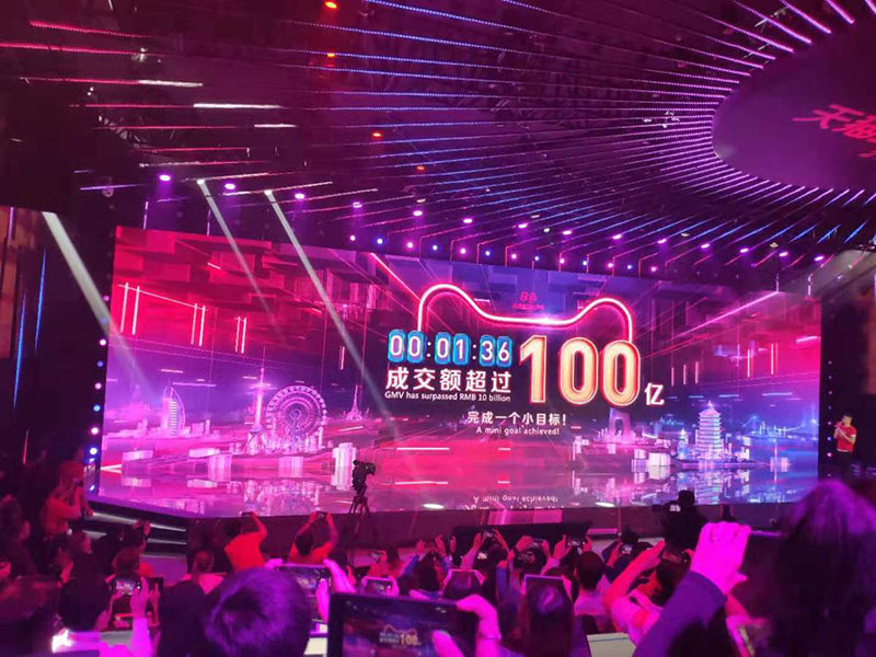 Las ventas en la plataforma Tmall de Alibaba en el Día de los Solteros alcanzaron los 10.000 millones de yuanes en 96 segundos. [Foto / China Daily]