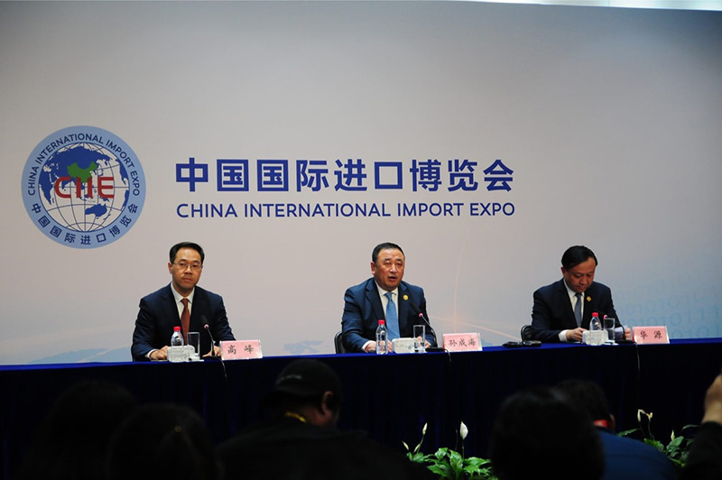 Sun Chenghai (en el centro), subdirector de la Oficina Internacional de Exposiciones de Importaciones de China, responde a preguntas en una rueda de prensa el 10 de noviembre de 2019. [Foto / chinadaily.com.cn por Xing Yi]