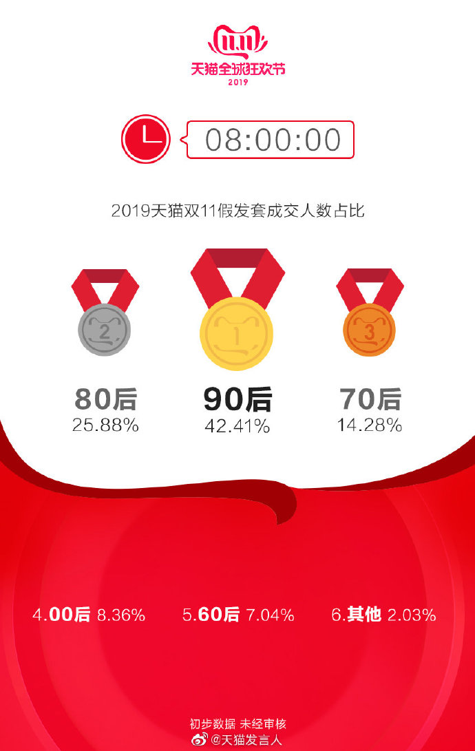 Según las estadísticas publicadas por la cuenta de Weibo "Portavoz de Tmall", entre todos los grupos de compradores de fundas para pelucas durante el Día de los Solteros, el volumen de transacciones en el grupo de nacidos en los a?os 90 representó el 42,41%, la mayor proporción de todos los grupos de edad.