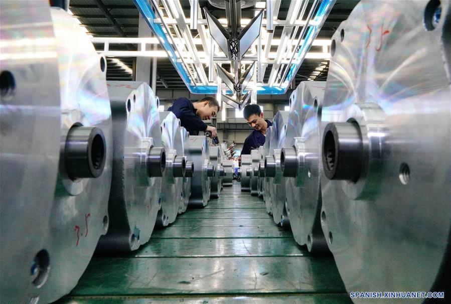 SHIJIAZHUANG, 17 noviembre, 2019 (Xinhua) -- Trabajadores laboran en una compa?ía de equipo electromecánico, en el distrito de Kaiping de Tangshan, en la provincia de Hebei, en el norte de China, el 17 de noviembre de 2019. Tangshan ha estado impulsando la industria de fabricación de equipos en un esfuerzo por vigorizar la economía regional. (Xinhua/Yang Shiyao)
