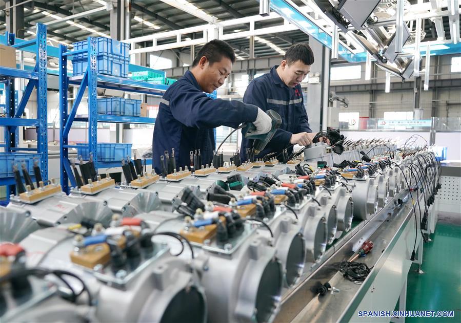 SHIJIAZHUANG, 17 noviembre, 2019 (Xinhua) -- Trabajadores laboran en una compa?ía de equipo electromecánico, en el distrito de Kaiping de Tangshan, en la provincia de Hebei, en el norte de China, el 17 de noviembre de 2019. Tangshan ha estado impulsando la industria de fabricación de equipos en un esfuerzo por vigorizar la economía regional. (Xinhua/Yang Shiyao)
