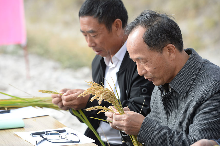 El equipo de investigación de Yuan Longping, que comenzó en 2018 a plantar arroz en este campo salino-alcalino, este a?o amplió su campo de arroz experimental a más de 20 hectáreas en Yopurga, condado situado cerca del Taklimakan, el desierto más grande de China.