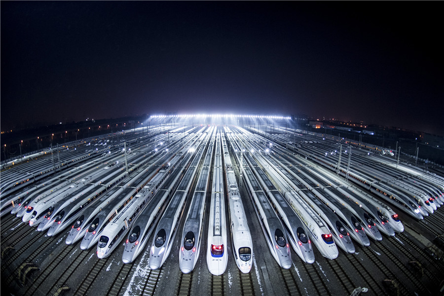 Trenes de alta velocidad esperan mantenimiento en Wuhan. [Foto: Xinhua]