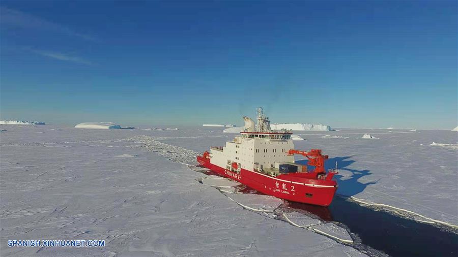 A BORDO DEL XUELONG 2, 24 noviembre, 2019 (Xinhua) -- Imagen del 22 de noviembre de 2019, del rompehielos polar de China, Xuelong 2, rompiendo hielo en las aguas en la Antártida. (Xinhua/Liu Shiping)