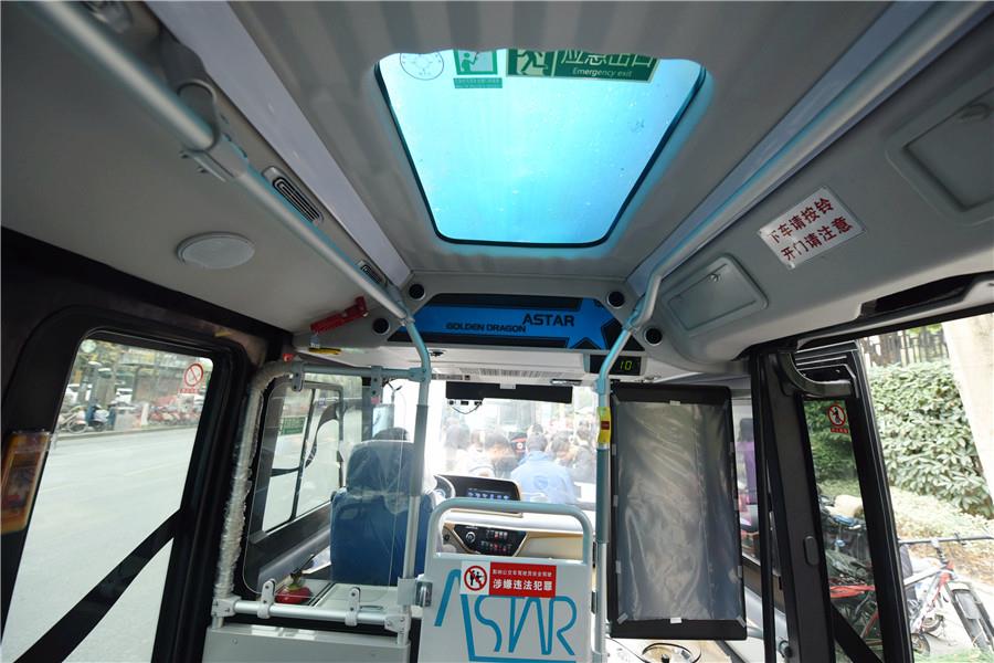 El interior de un minibús sin conductor con conductor 5G en Hangzhou, provincia de Zhejiang, este de China, el 26 de noviembre de 2019. [Foto / Asianewsphoto]