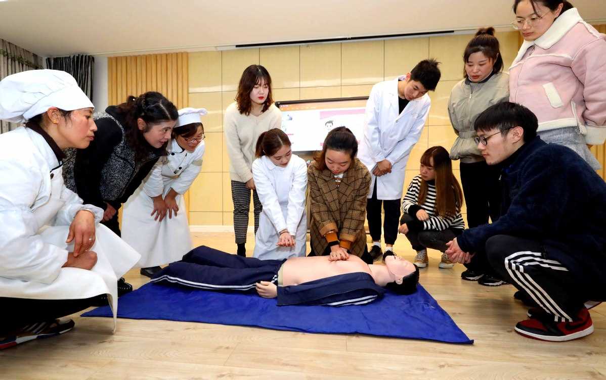 Los voluntarios del Tercer Hospital Popular de la provincia de Jiangsu de Zhenjiang ofrecen capacitación de conocimientos de primeros auxilios a los maestros locales de guardería en la ciudad el miércoles. WAN LINGYUN / PARA CHINA DAILY