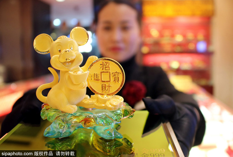 Un adorno de oro en forma de rata en Suzhou, provincia de Jiangsu, el 10 de diciembre. [Foto / Sipa]
