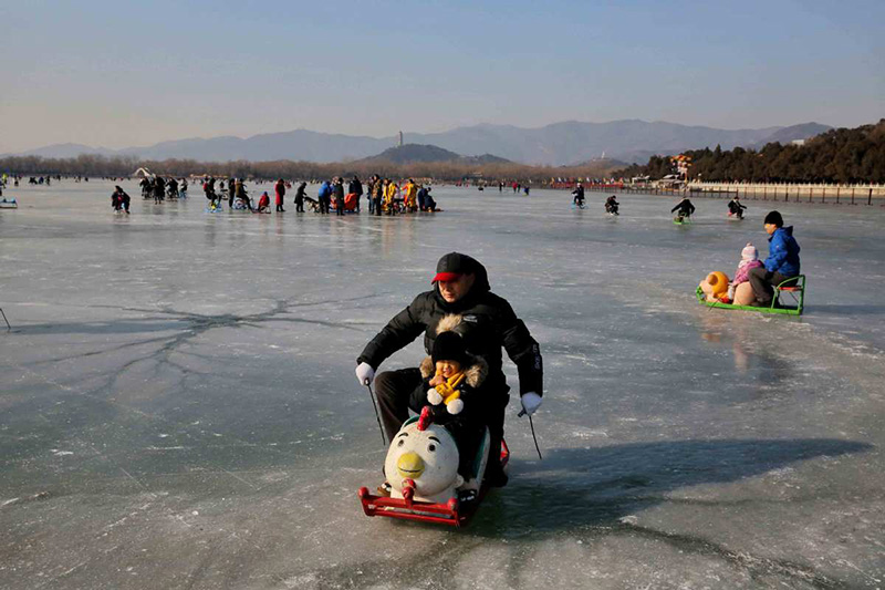 La pista de hielo en el Palacio de Verano, que abrió el 1 de enero de 2020, es el lugar ideal para divertirse en invierno el día de A?o Nuevo. [Foto por Jiang Dong / chinadaily.com.cn]