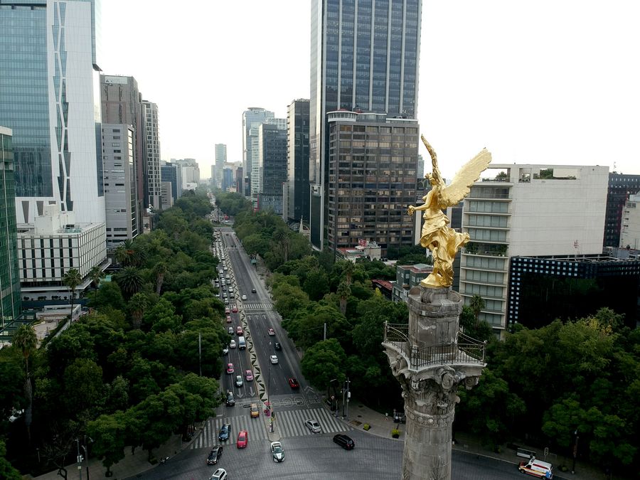 Imagen del 27 de agosto de 2019 tomada con un dron de vehículos circulando por la avenida Paseo de la Reforma, en la Ciudad de México, capital de México. (Xinhua/Francisco Ca?edo)