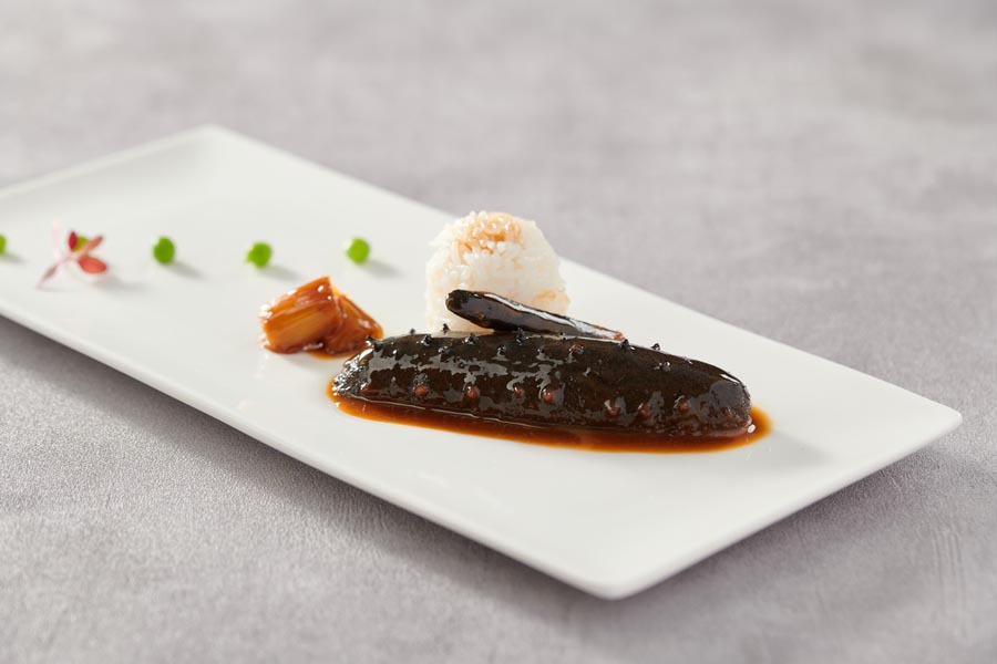 Pepino de mar con puerro estofado. [Foto: proporcionada a China Daily]