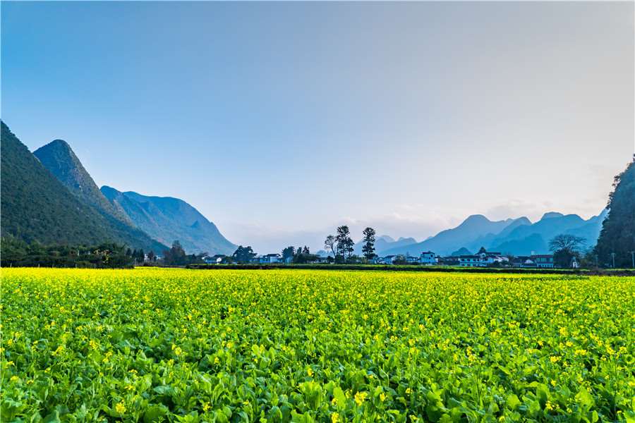 Flores de colza en la atractiva zona Wanfenglin, provincia de Guizhou. [Foto: Li Lingyan/ Chinadaily]