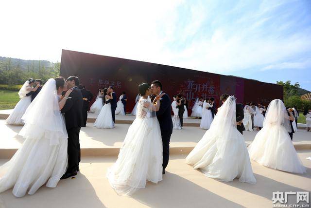Moganshan, Zhejiang, 29/04/2020 (El Pueblo en Línea) - Más de 40 parejas, cuya fecha de boda se retrasó debido al brote de la epidemia, se casaron el 25 de abril en una ceremonia grupal celebrada en la ciudad de Moganshan, condado de Deqing, provincia de Zhejiang.