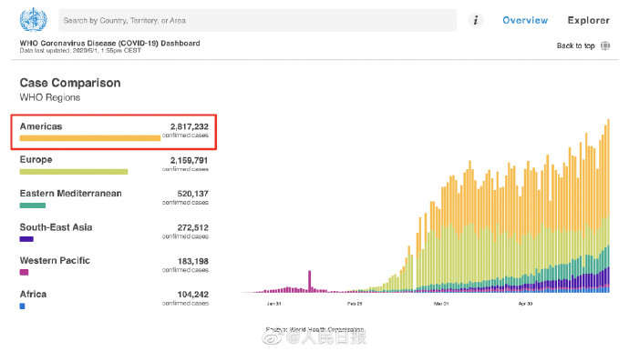 Según datos de la OMS, en las últimas 24 horas, hasta la mitad de los 10 países con más nuevos casos de COVID-19 en el mundo se encuentran en América, incluido Brasil, Estados Unidos, Perú, Chile y México. Michael Ryan, director ejecutivo del Programa de Emergencias de Salud de la OMS, también dijo que el pico de la epidemia en la región aún no ha llegado, y actualmente es difícil predecir cuándo llegará a su punto máximo.