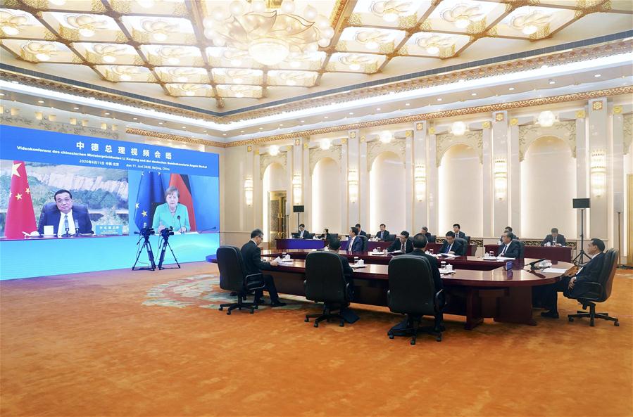 BEIJING, 11 jun (Xinhua) -- El primer ministro chino, Li Keqiang, y la canciller alemana, Angela Merkel, sostuvieron hoy jueves una videoreunión.