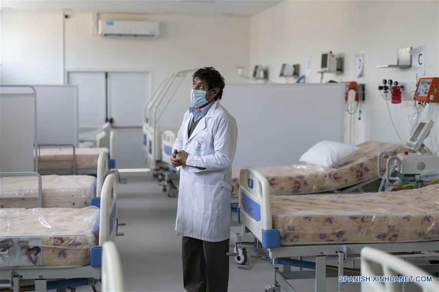 EZEIZA, 13 junio, 2020 (Xinhua) -- Imagen del 12 de junio de 2020 del doctor Alejandro Rebollini, director asociado del Hospital Zonal General de Agudos Dr. Alberto Antranik Eurnekian, recorriendo la nueva zona de Terapia Covid del hospital, en la ciudad de Ezeiza, a 40 kilómetros de Buenos Aires, capital de Argentina. Un hospital público de la ciudad argentina de Ezeiza, el primero que se preparó en el país para hacer frente a la pandemia del nuevo coronavirus (COVID-19), se mantiene en la primera línea de batalla contra la enfermedad y para ello cuenta con el respaldo de insumos provenientes de China. (Xinhua/Martín Zabala)