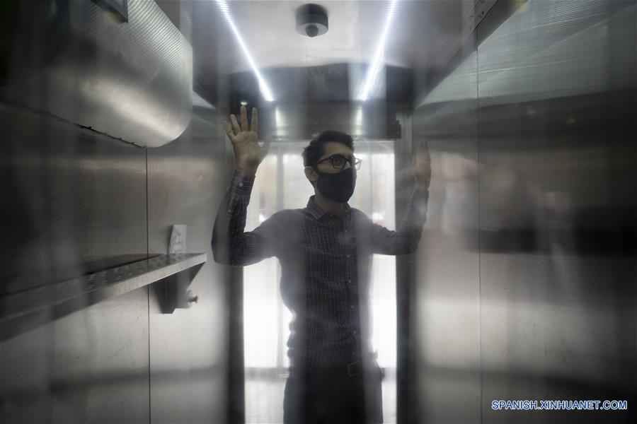 EZEIZA, 13 junio, 2020 (Xinhua) -- Imagen del 12 de junio de 2020 de un hombre ingresando a una cabina de desinfección por ozono, colocada en la entrada al Hospital Zonal General de Agudos Dr. Alberto Antranik Eurnekian, en la ciudad de Ezeiza, a 40 kilómetros de Buenos Aires, capital de Argentina. Un hospital público de la ciudad argentina de Ezeiza, el primero que se preparó en el país para hacer frente a la pandemia del nuevo coronavirus (COVID-19), se mantiene en la primera línea de batalla contra la enfermedad y para ello cuenta con el respaldo de insumos provenientes de China. (Xinhua/Martín Zabala)